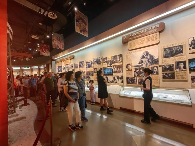 参训党员骨干跟随讲解参观了基本陈列展“百年历程 世纪辉煌”。展览将中国电影的发展史与中国共产党的发展史相结合,展现了中国共产党人在新民主主义革命时期、社会主义革命和建设时期、改革开放和社会主义现代化建设新时期以及中国特色社会主义新时代这百余年发展历程中艰苦奋斗、勤政爱民、廉洁奉公的高贵品质。参训党员在中国电影事业发展历史长河中感受时代精神,汲取奋进力量,增强党性修养。